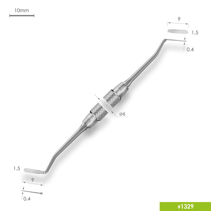 Окончания всех гладилок имеют правильную полусферическую форму. Толщина кончика гладилки составляет всего 0,4mm, при этом гладилка обладает небольшой степенью эластичности, но в целом остается достаточно жесткой. Сочетание этих факторов делает инструмент функциональным и изящным, что позволяет производить точные и деликатные манипуляции