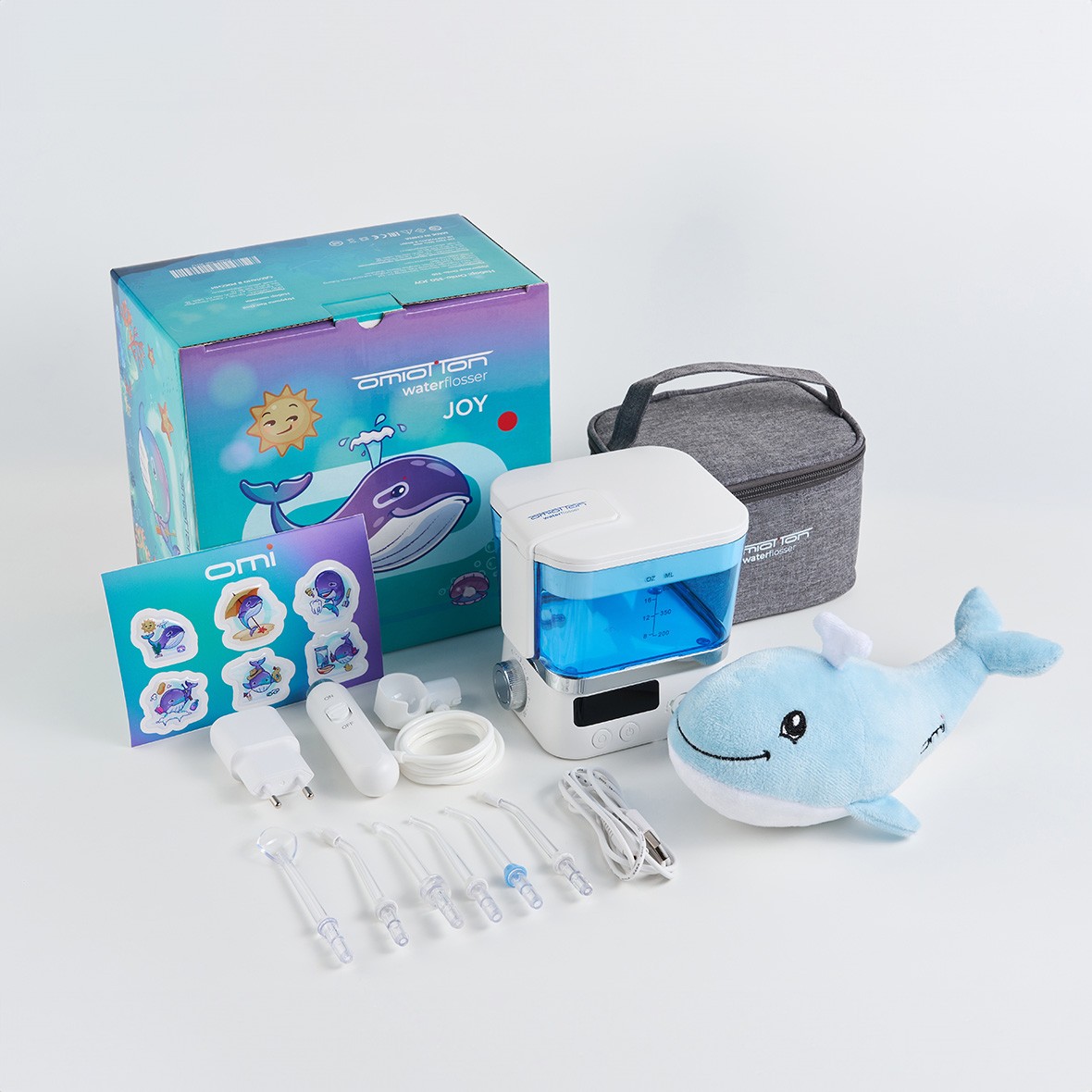 - Улучшение детского самочувствия: правильный уход за зубами включает использование различных инструментов. Использование ирригатора OMIO-350 JOY может помочь детям развивать навыки самостоятельной заботы о здоровье и повышает их самооценку.