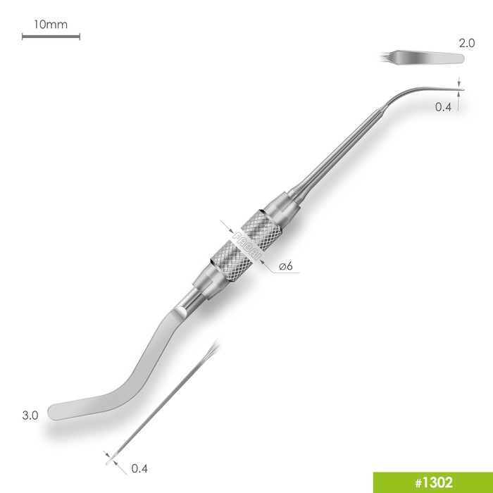 Окончания всех гладилок имеют правильную полусферическую форму. Толщина кончика гладилки составляет всего 0,4mm, при этом гладилка обладает небольшой степенью эластичности, но в целом остается достаточно жесткой. Сочетание этих факторов делает инструмент функциональным и изящным, что позволяет производить точные и деликатные манипуляции